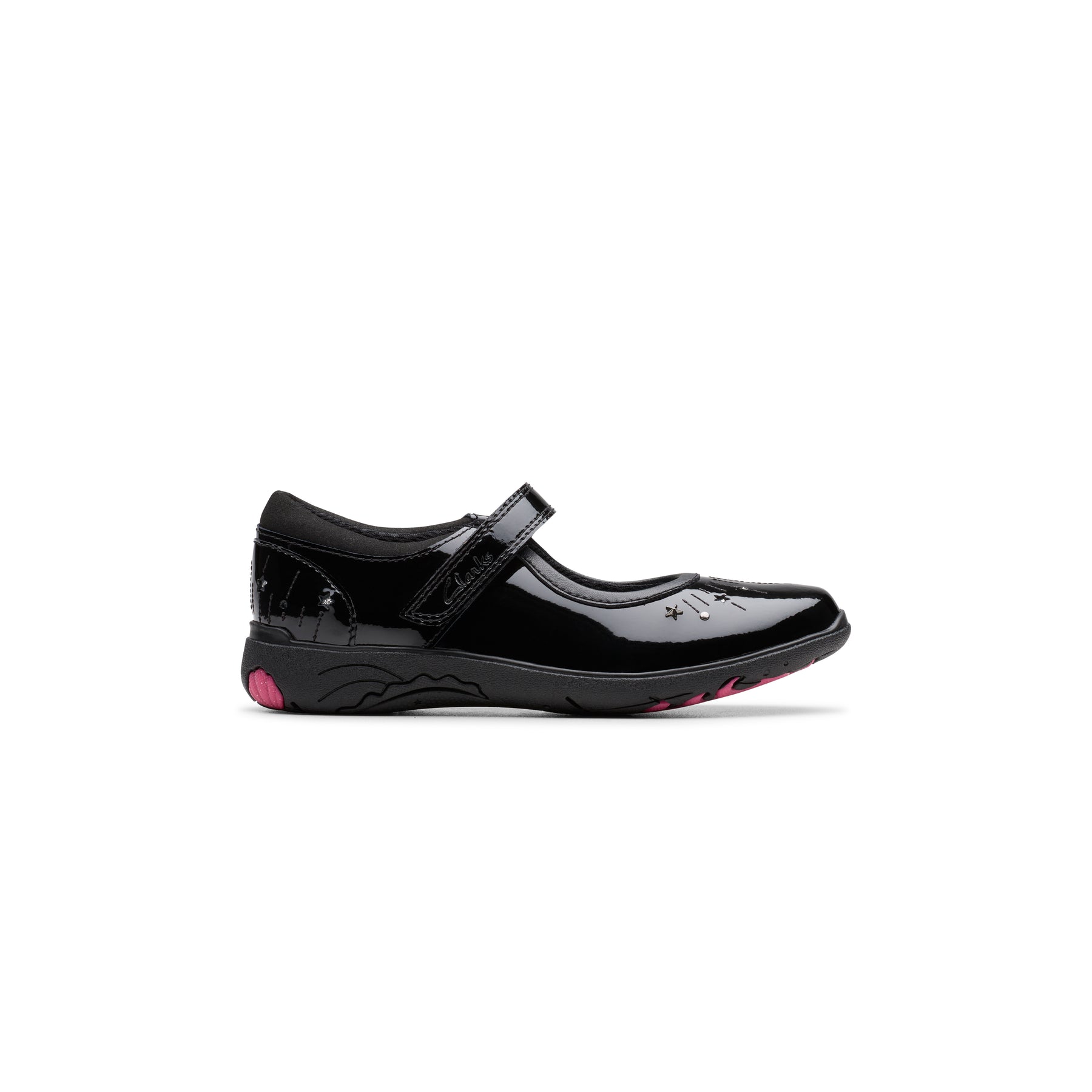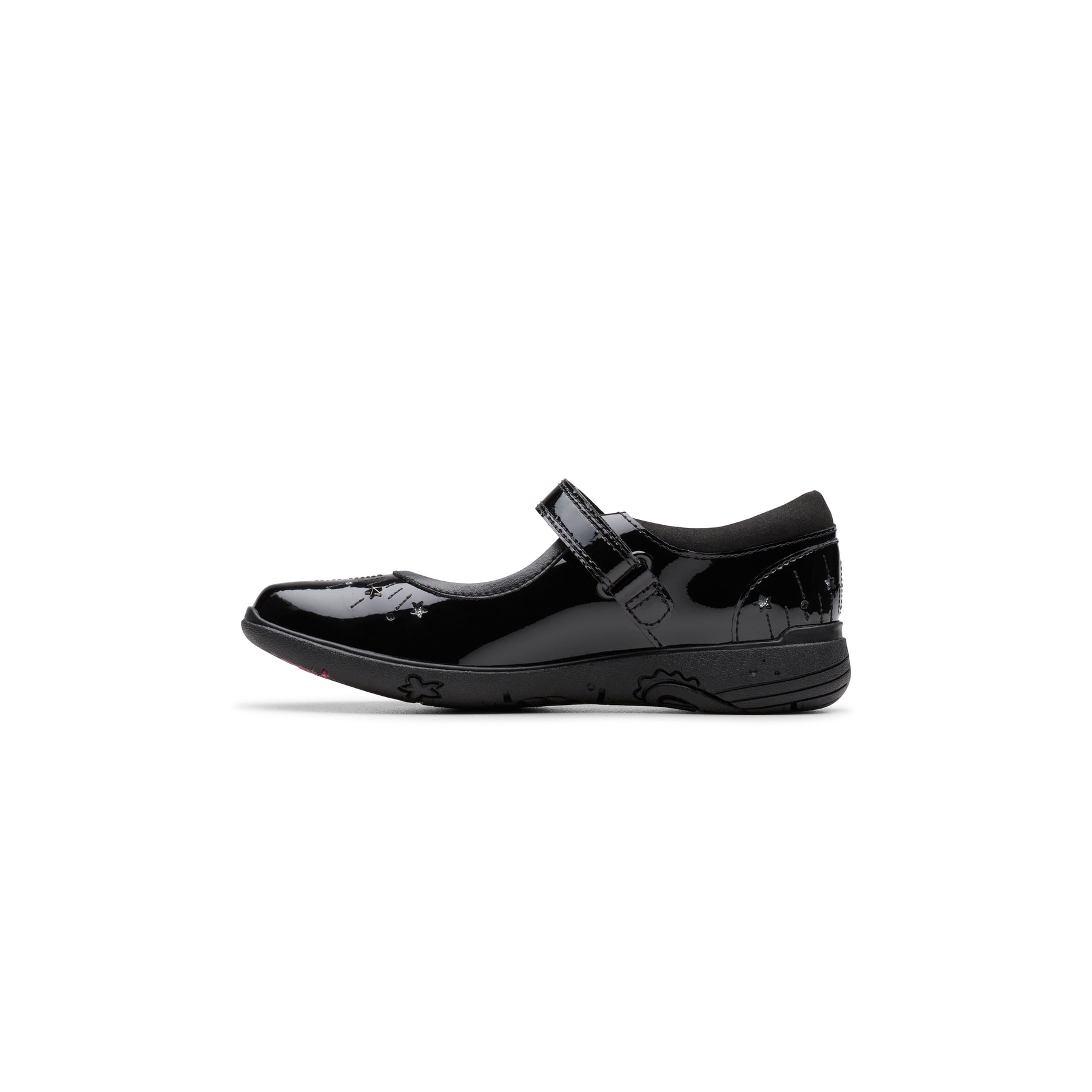 • Durable black patent leather upper