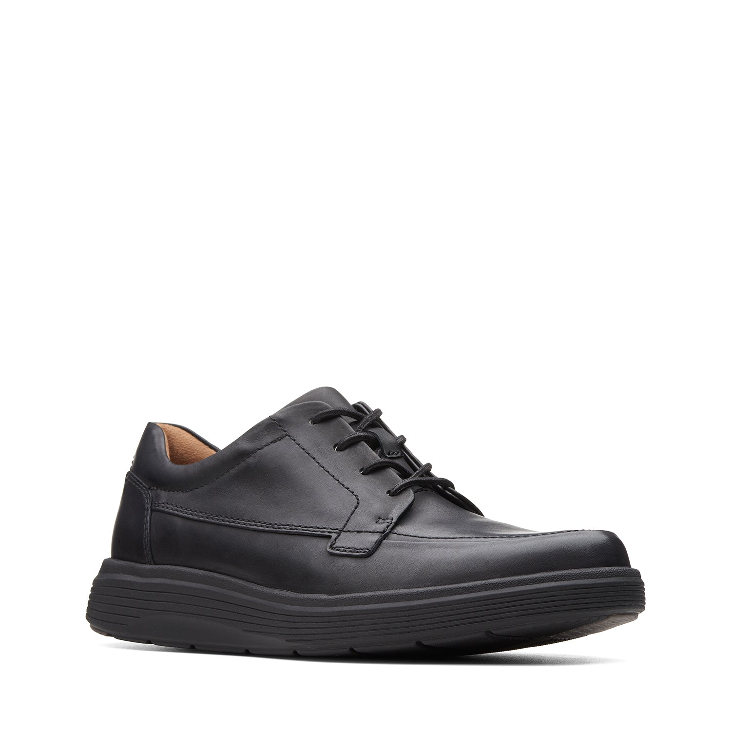 Offering instant comfort thanks to its dual density Cushion Max™ footbed and premium leather linings and sock, the casual Un Adobe Ease lace-up is ideal for everyday wear. Crafted in a versatile black leather with subtle stitchwork, the upper sits on durable lightweight rubber sole.