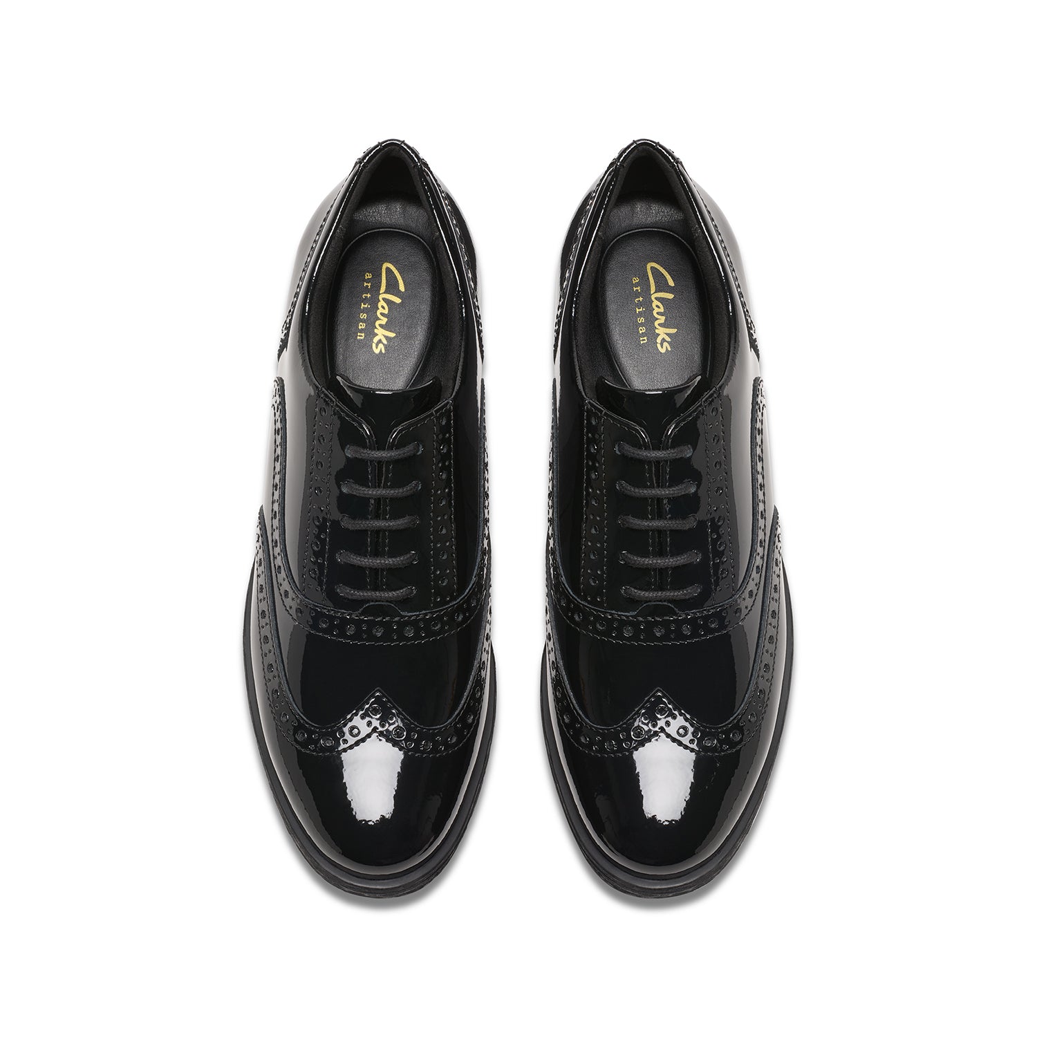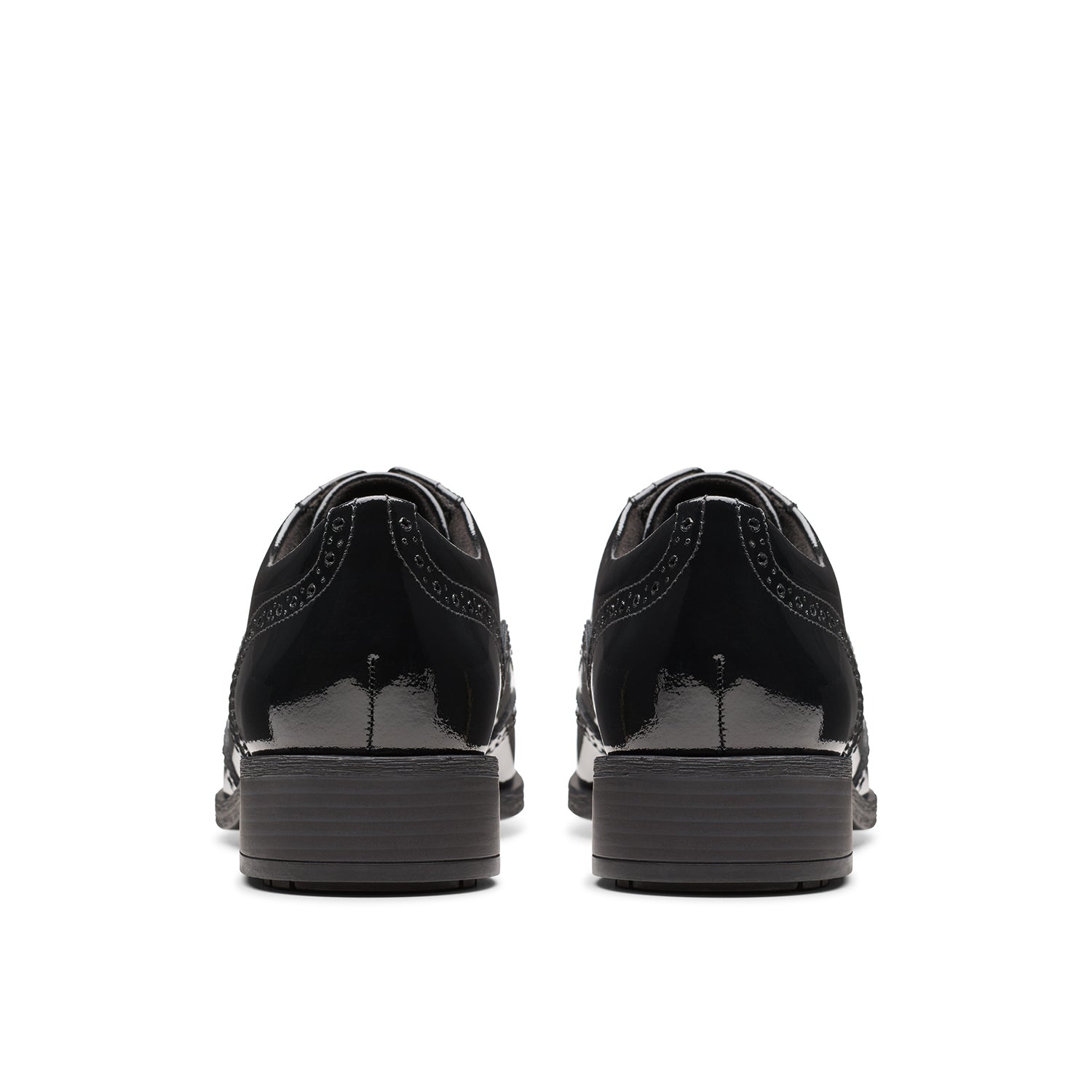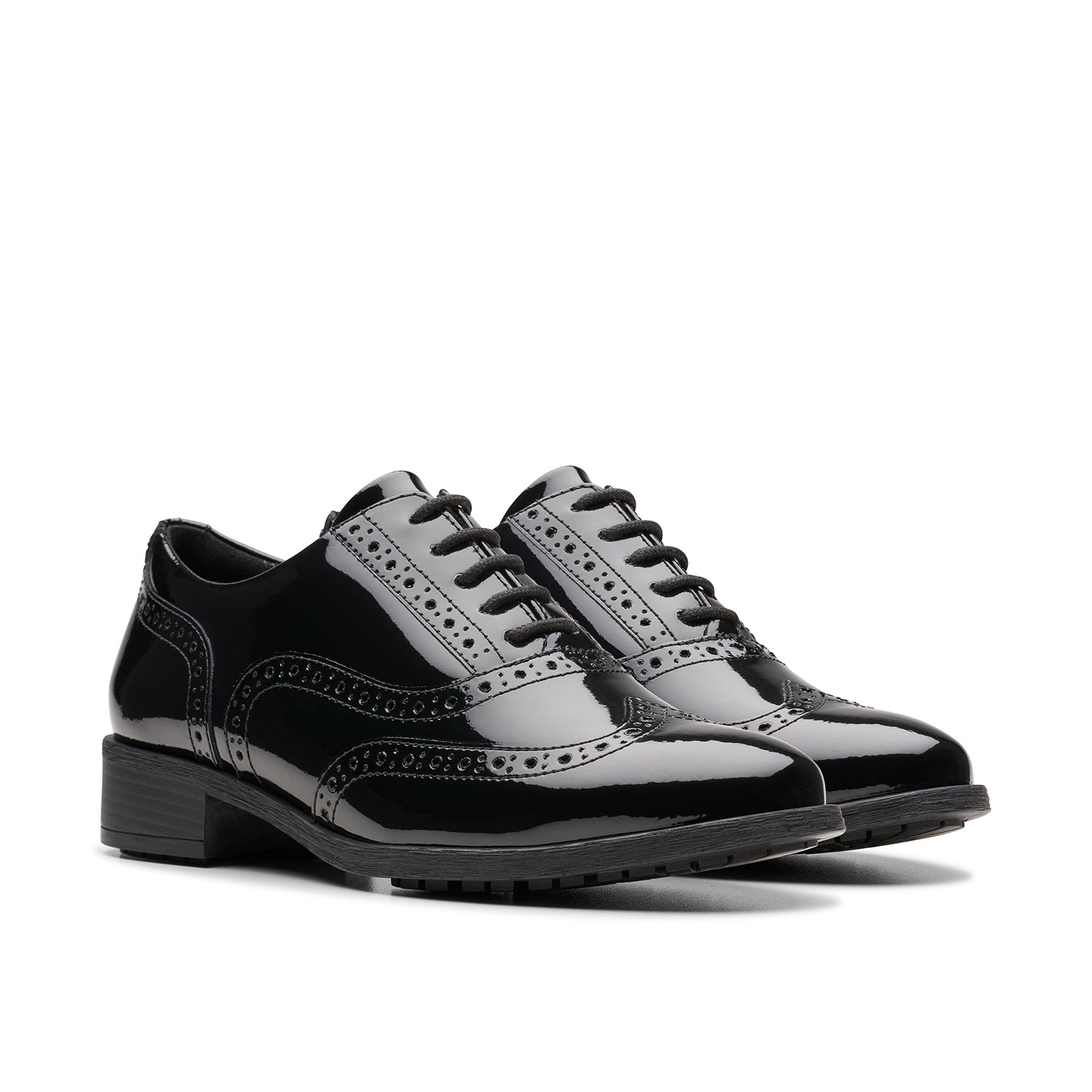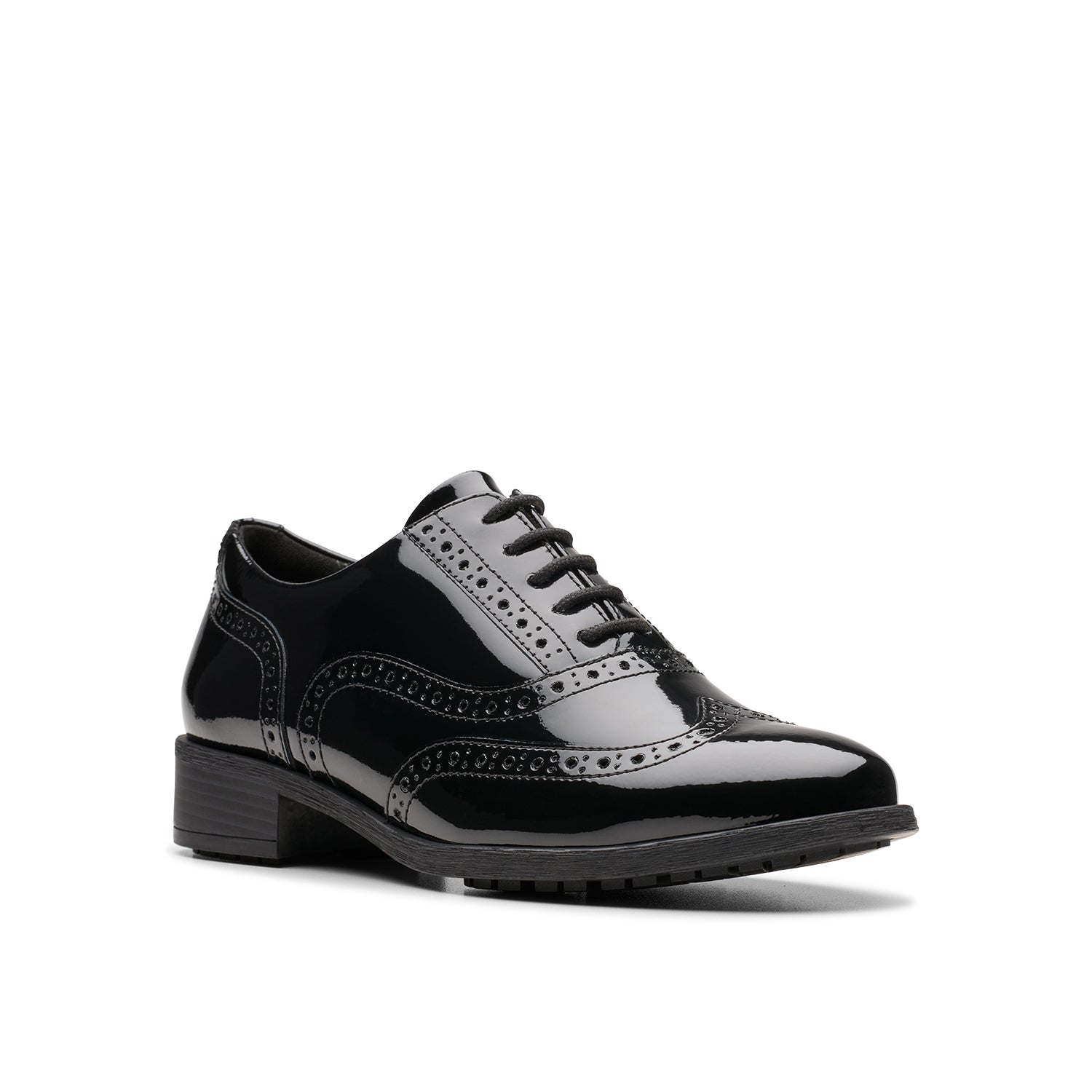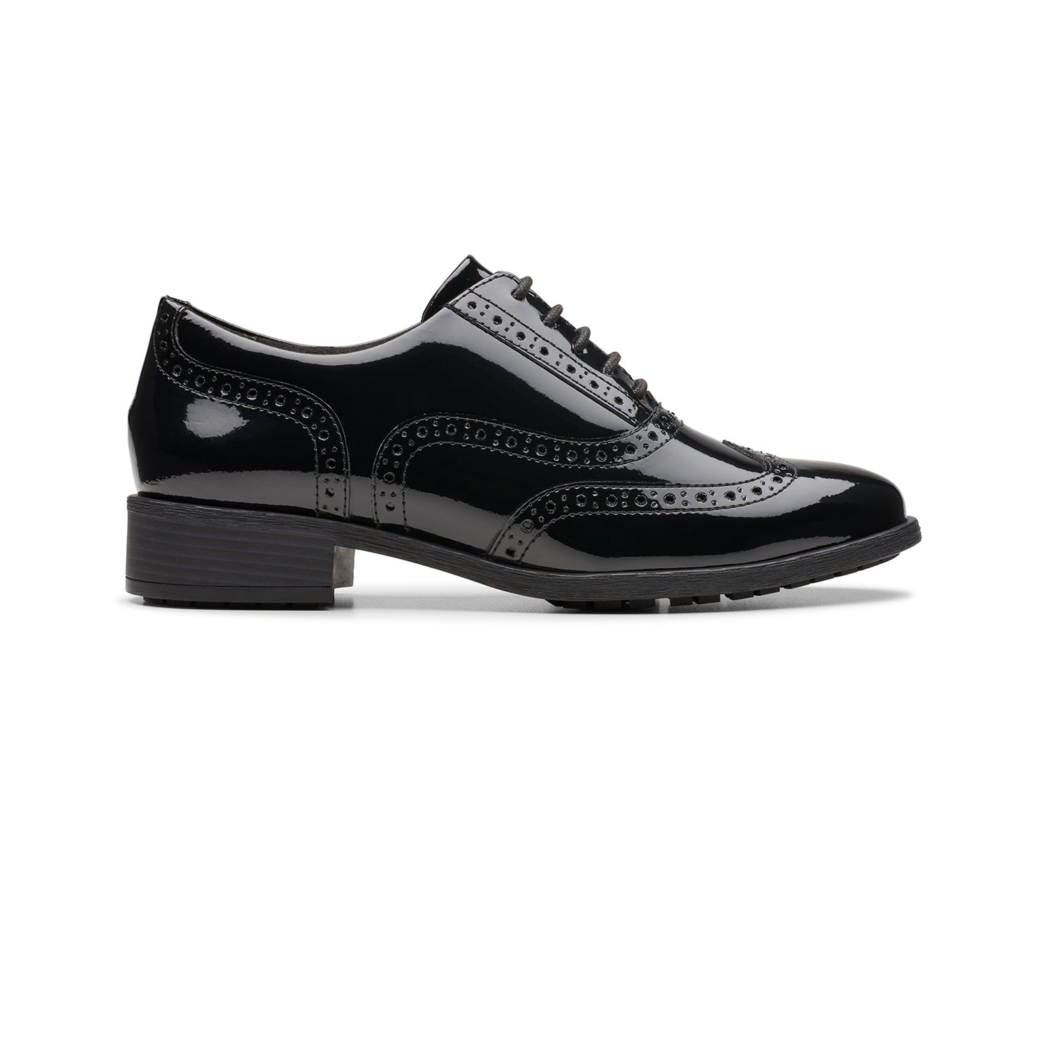 - Premium black patent leather upper