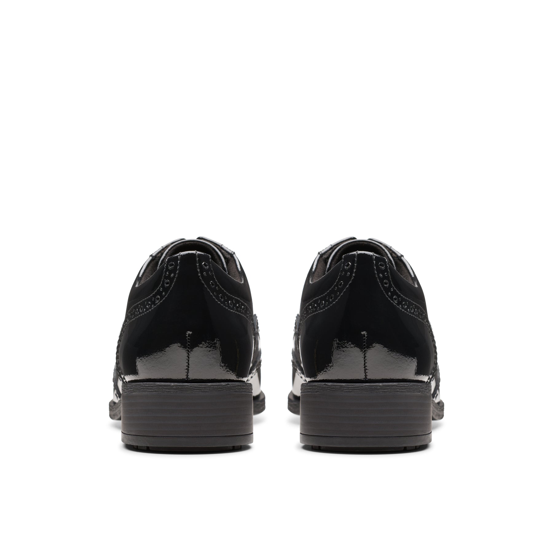 - Premium black patent leather upper