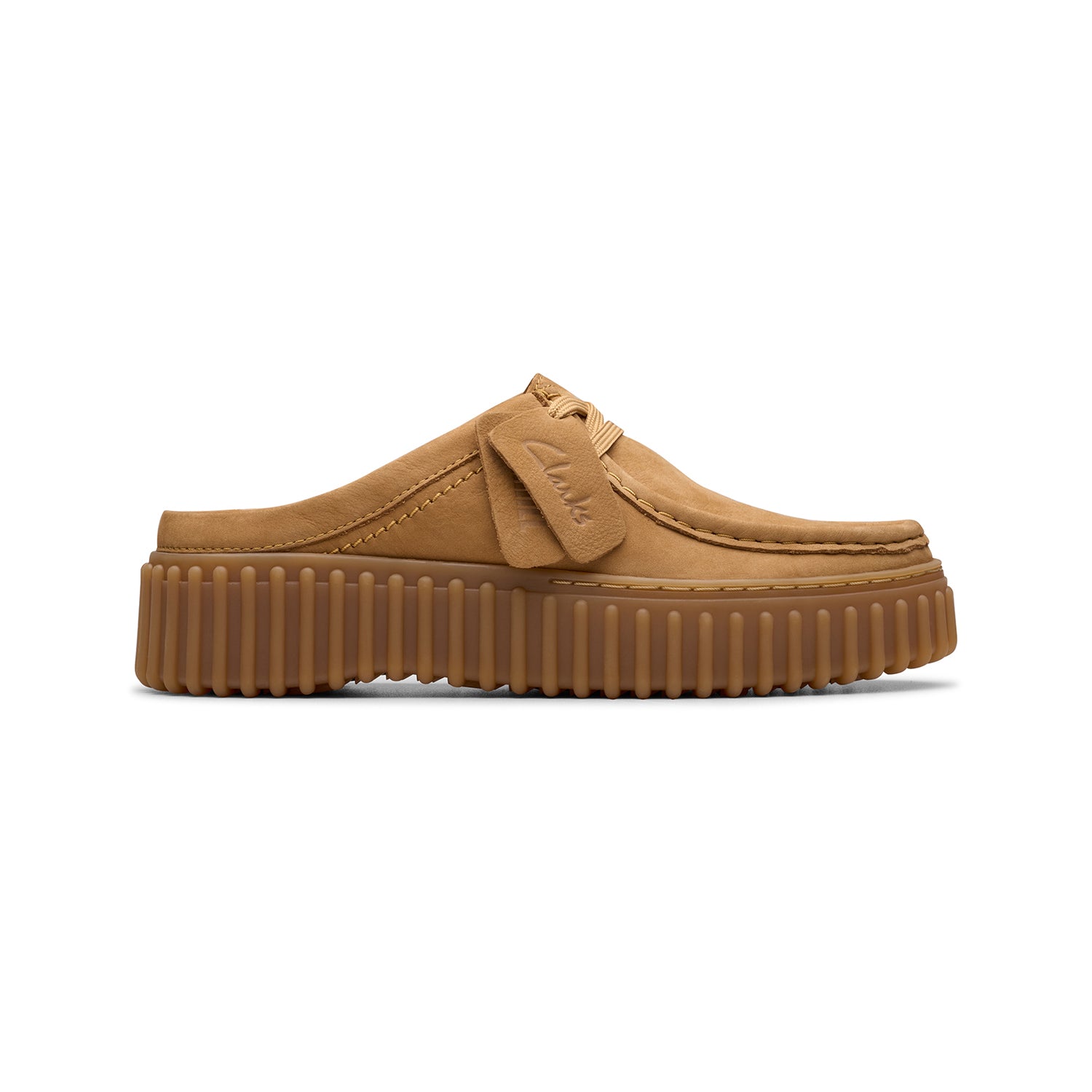 Crafted from premium nubuck in a classic light tan colourway, Torhill Mule champions all the design codes of our icon in an easy slip-on profile. Its statement ribbed outsole serves up vintage Clarks cool – while heritage stitching and fobs enhance its crafted aesthetic.